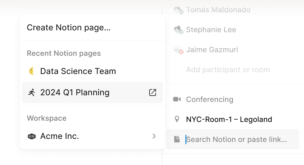 Actualmente, Notion Calendar se integra y sincroniza con la cuenta de Google Calendar. La compatibilidad con otros proveedores de calendarios como Outlook y iCloud está en nuestra hoja de ruta.