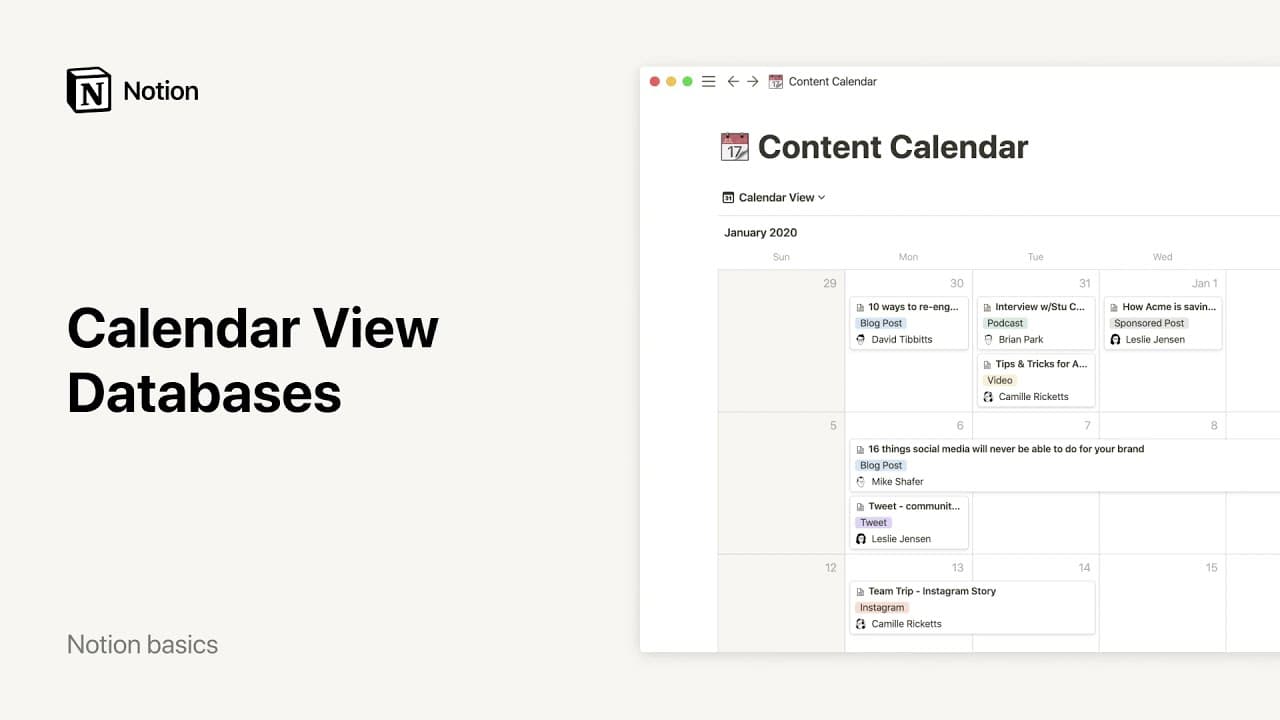 カレンダービューカレンダーを使えば、データベース上のアイテムを日付に照らし合わせて可視化することができます。カレンダーなら、重要なリリース予定や複数日にわたるイベント、複数月におよぶプロジェクトまで、俯瞰的に見ることができます ️🗓